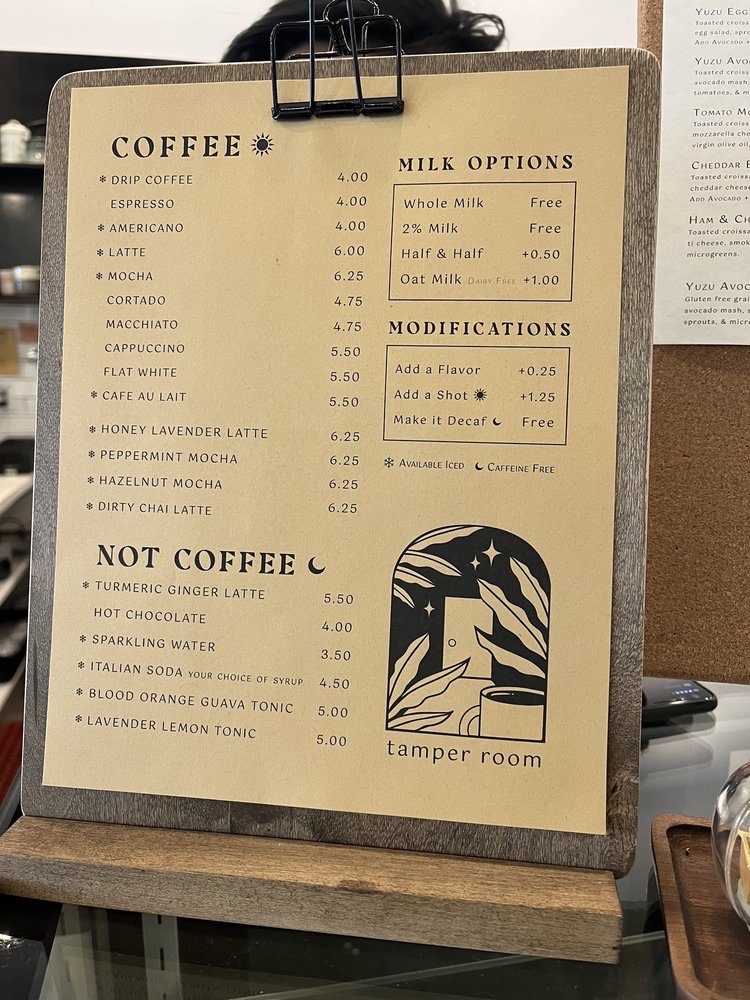 Tamper Room Cafe & Gallery Menu